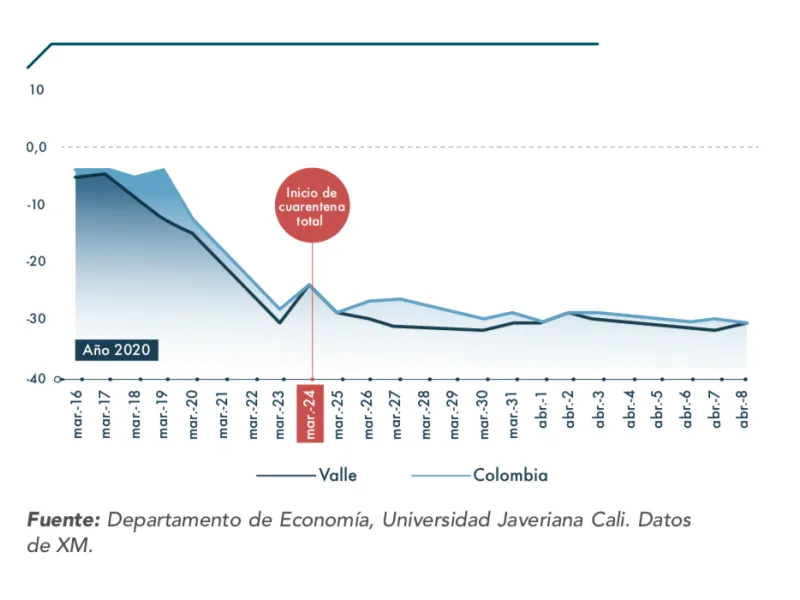 En lo que va de la cuarentena se ha presentado una reducción en la demanda de energía en el Valle del Cauca. Así se se dio a conocer en el tercer boletín creado por investigadores del Departamento de Economía de la Javeriana Cali para analizar los impactos generados por la pandemia del Covid-19 tanto a nivel regional como nacional. Se trata del mismo equipo de profesionales que creó el Indicador Mensual de Actividad Económica- IMAE.