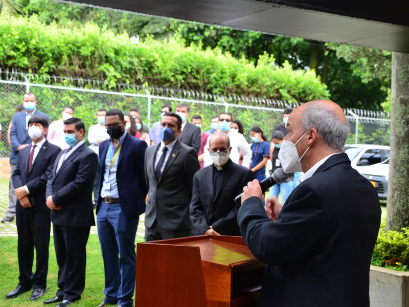 En la ceremonia estuvieron presentes las directivas de la Javeriana Cali y Bogotá, para realizar un acto de bendición del lugar por parte de los rectores de ambas sedes, Jorge Humberto Peláez, S.J. y Luis Felipe Gómez Restrepo, S.J., quienes también recorrieron el instituto para conocer sus laboratorios.