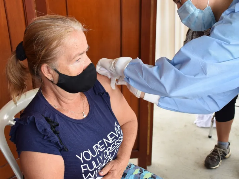 797 pacientes mayores de 65 años con régimen subsidiado y contributivo recibieron la vacuna contra el Covid-19 como parte del programa Vacunación sin Barreras, una alianza entre la Javeriana Cali, la ESE Ladera y la Secretaría de Salud Pública. Durante el viernes, sábado y domingo, habitantes de la comunidad caleña se acercaron para recibir la primera dosis.