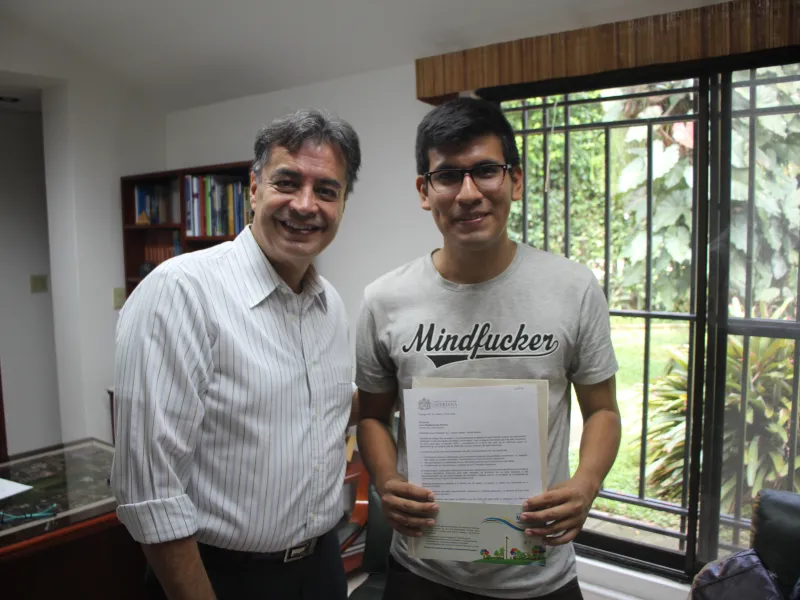 Reconocer los esfuerzos de los estudiantes y su compromiso con nuestra institución son un elemento vital para la Universidad y la comunidad educativa, por ello, la Vicerrectoría del Medio Universitario becó a Sebastián Ipia Ramos, estudiante de quinto semestre de Comunicación, quien se destacó por su activa participación en el Medio.