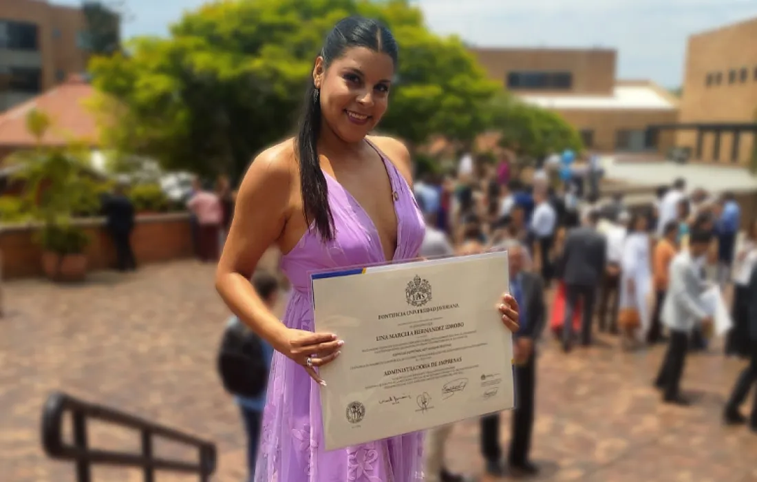 Lina ha brillado a lo largo de su recorrido académico y finalmente completó con éxito su programa de estudios en la carrera de Administración de Empresas, en la Javeriana Cali, su compromiso y el continuo deseo de aprender han dado como resultado un logro excepcional. Desde que Lina recibió la beca para cursar sus estudios, su camino ha sido un ejemplo del poder de la perseverancia y la pasión por cumplir sus sueños. Por eso, a lo largo de su tiempo en la Javeriana Cali, ha demostrado ser una estudiante ejemplar, destacándose en varias áreas. Además de sus logros académicos, esta joven ha tenido que trabajar y estudiar al mismo tiempo, durante todo su recorrido académico y así continuar con sus obligaciones, demostrando que la dedicación hace la diferencia. Su familia, conformada por su madre y hermano menor, han sido su polo a tierra, brindándole todo el apoyo en esta etapa de retos y sacrificios, pues esta jóven un día decidió iniciar su camino profesional y hoy recibe los frutos de esa decisión, esto es un claro ejemplo de que ser Javeriano es un camino y un sello que vivimos en familia.